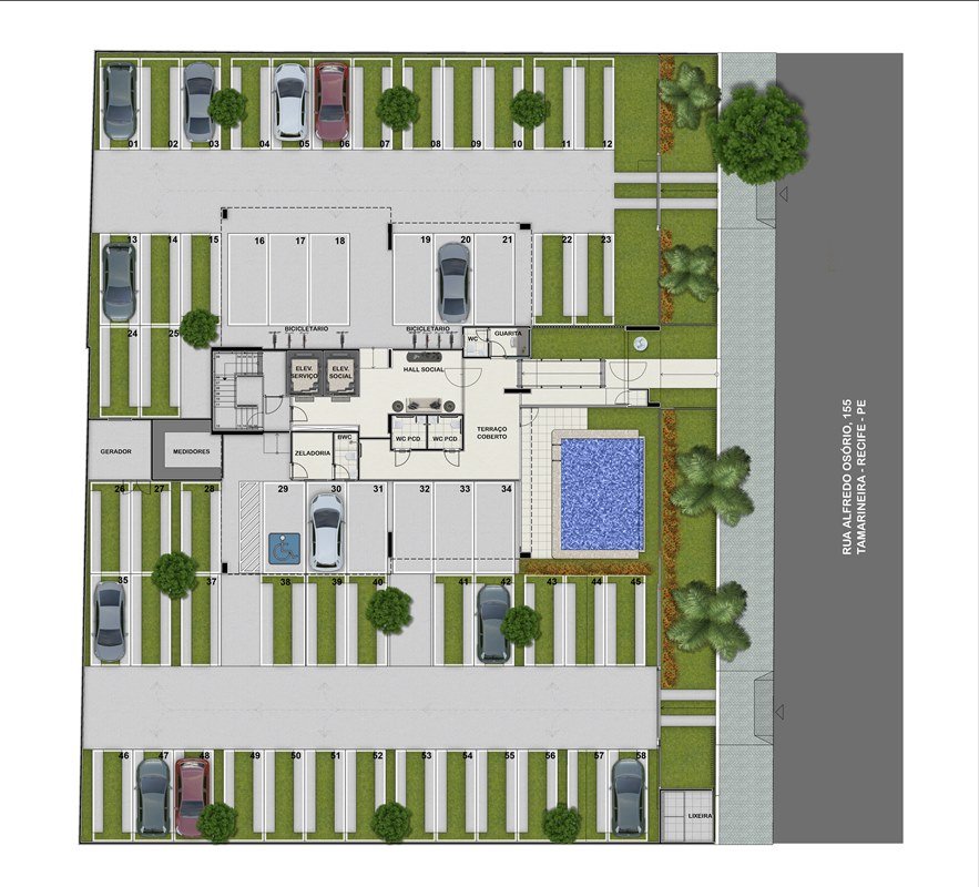 - 58 vagas de estacionamento