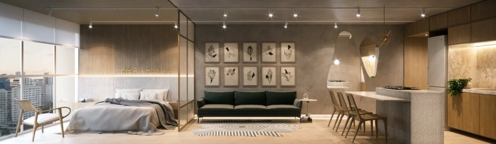 Apartamentos tipo studio,1 ou 2 quartos (sendo 1 suíte), 36 a 66m², vaga na garagem.