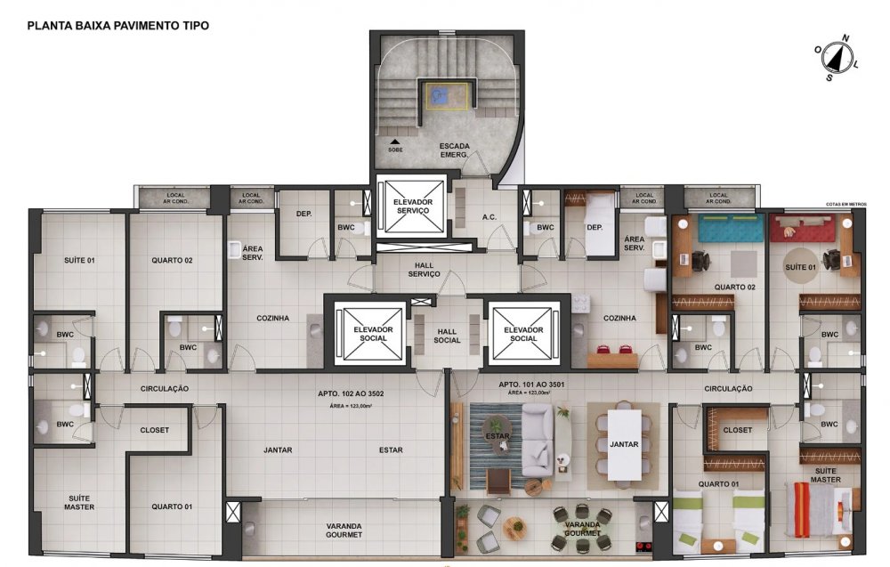 Área Total: 123 m² (R$ 11.950/m²)Área Privativa: 123 m²