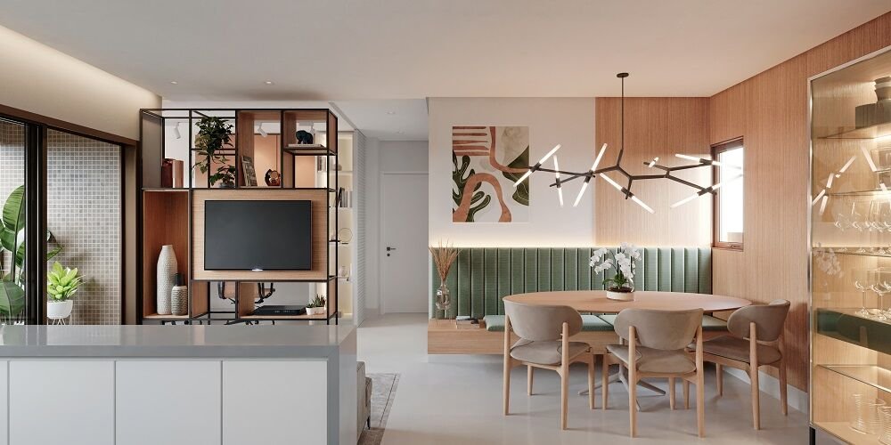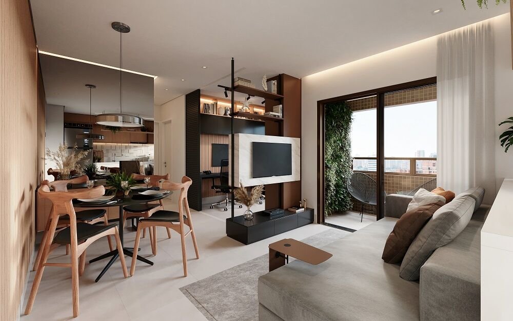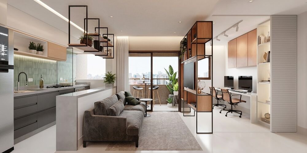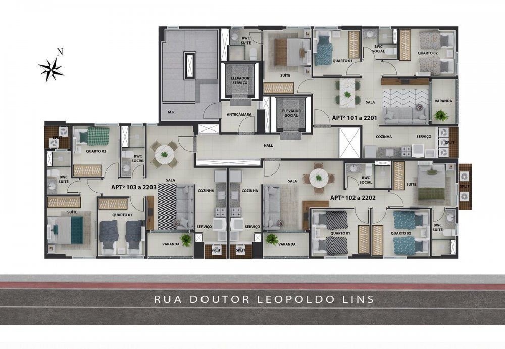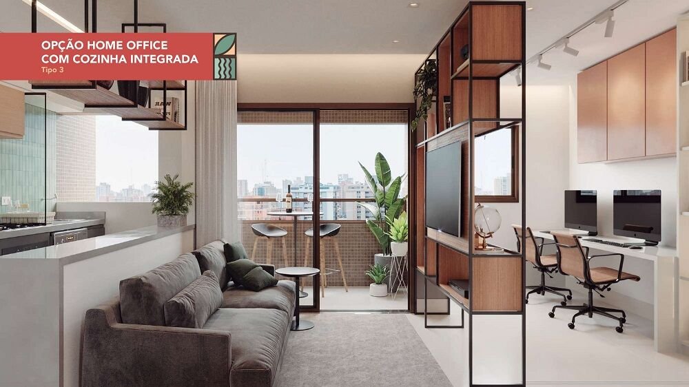Compostos por varanda, sala para 2 ambientes, cozinha, área de serviço, WC social, espaço para split.