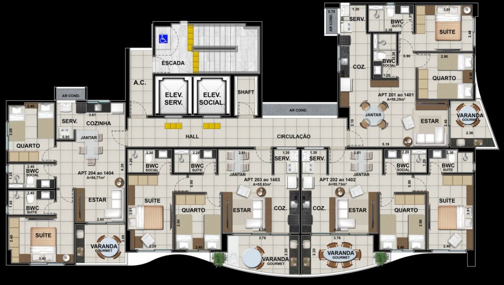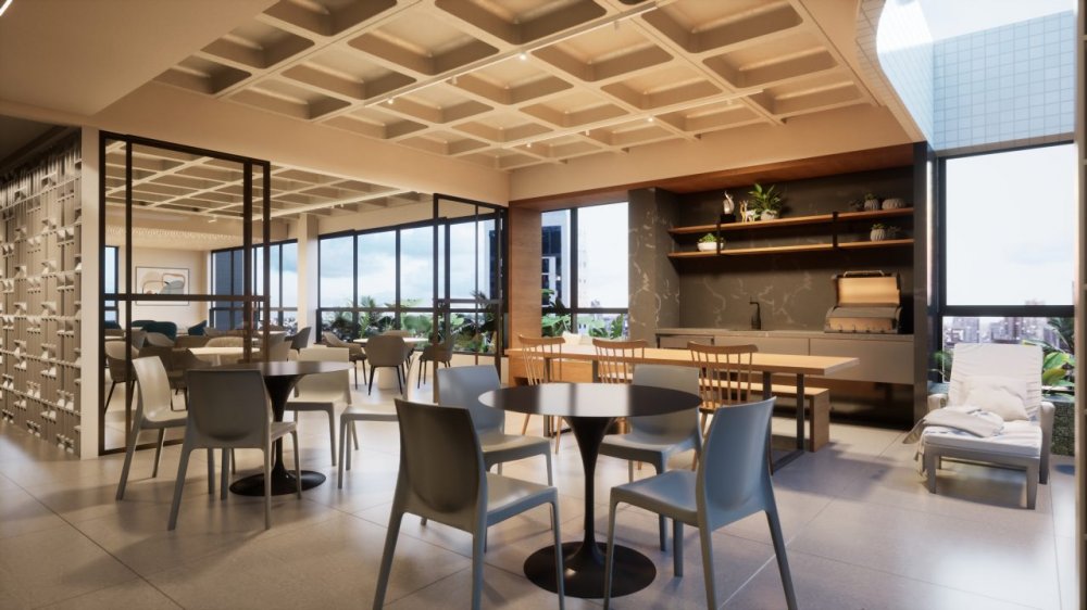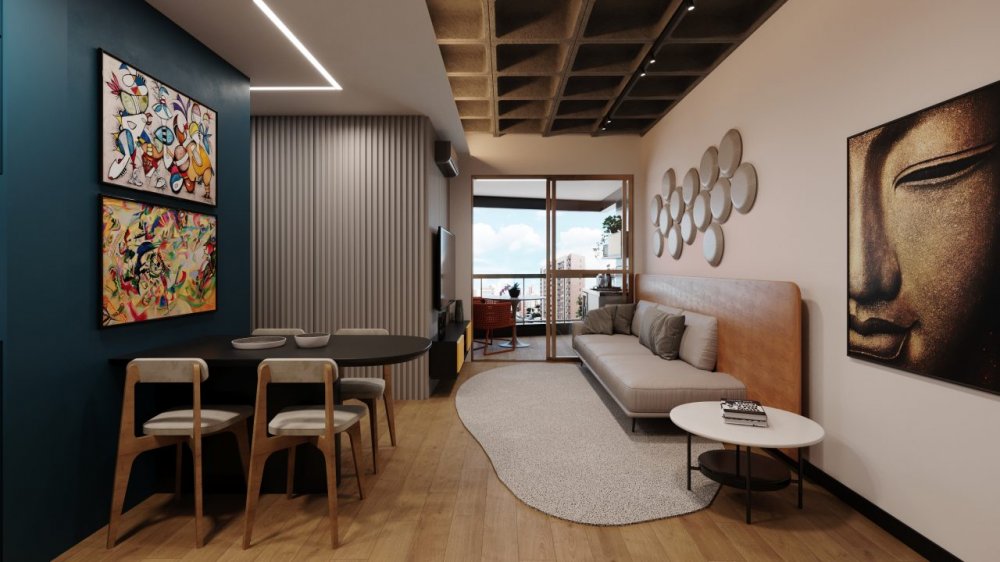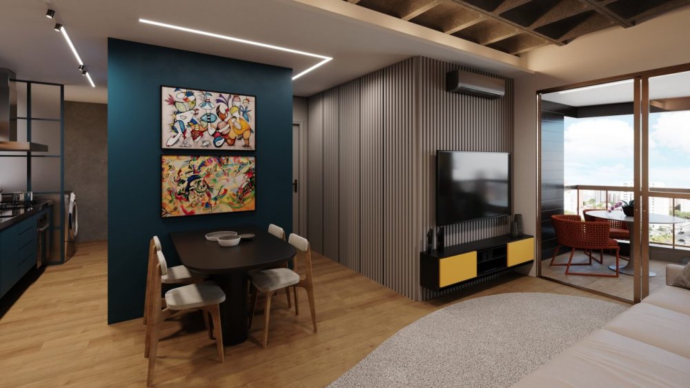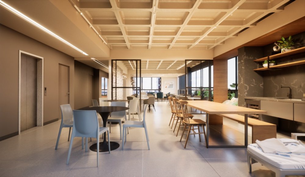 Compostos por varanda gourmet, sala para 2 ambientes, cozinha, área de serviço, WC social, espaço para split, e fechadura digital.