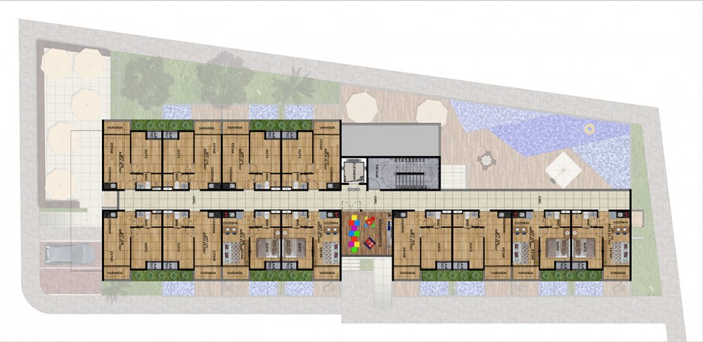 Apartamentos tipo flat, composto por Cozinha, Sala, Quarto, Fechadura eletrônica.