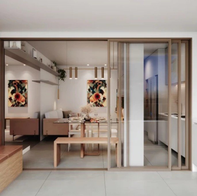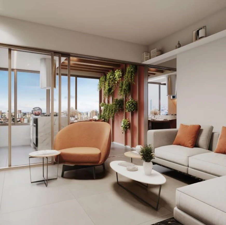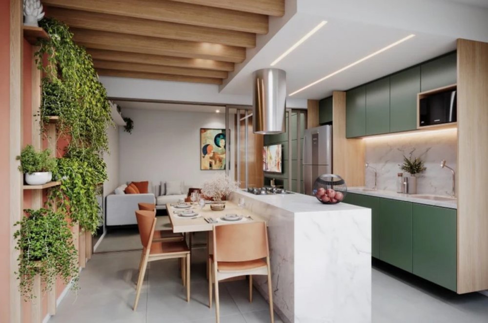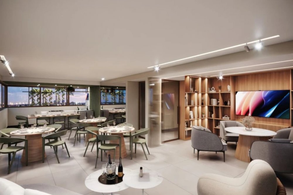 Compostos por varanda gourmet, sala para 2 ambientes, cozinha, área de serviço, WC social, espaço para split.