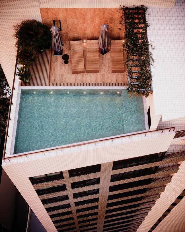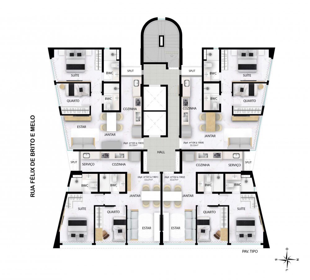 Compostos sala para 2 ambientes, cozinha, área de serviço, WC social, espaço para split, e todas as unidades entregues com piso porcelanato e fechadura digital.