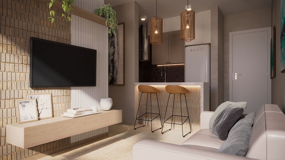 Compostos por varanda, sala, cozinha, WC social, espaço para split.