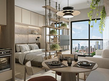 •Studios a partir de R$ 350.000 (Área Útil: 28 e 30m²)