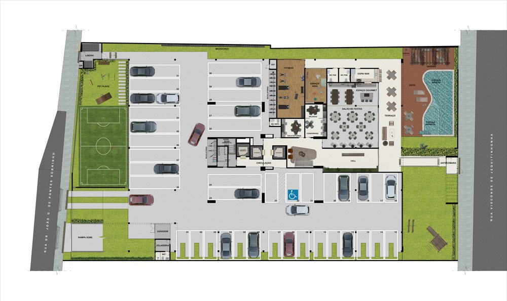 campinho, áreas comuns ambientadas por Romero Duarte.