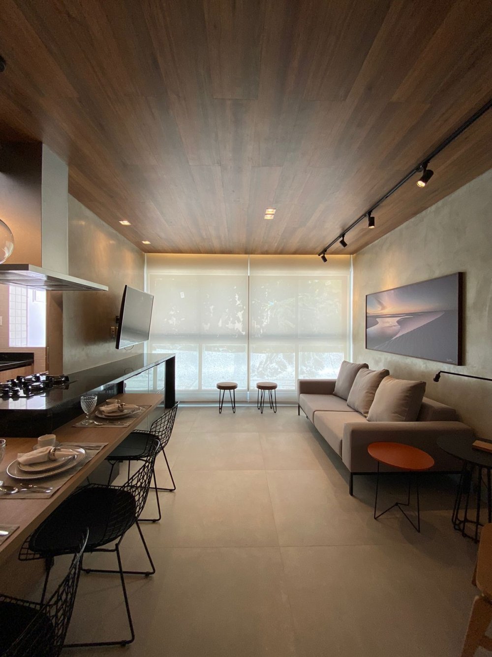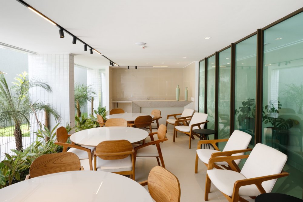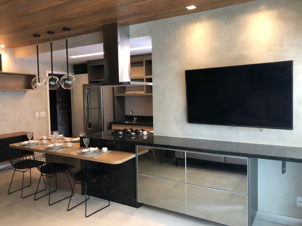 Compostos por sala ampla integrada a cozinha gourmet, área de serviço, WC social, espaço para split.