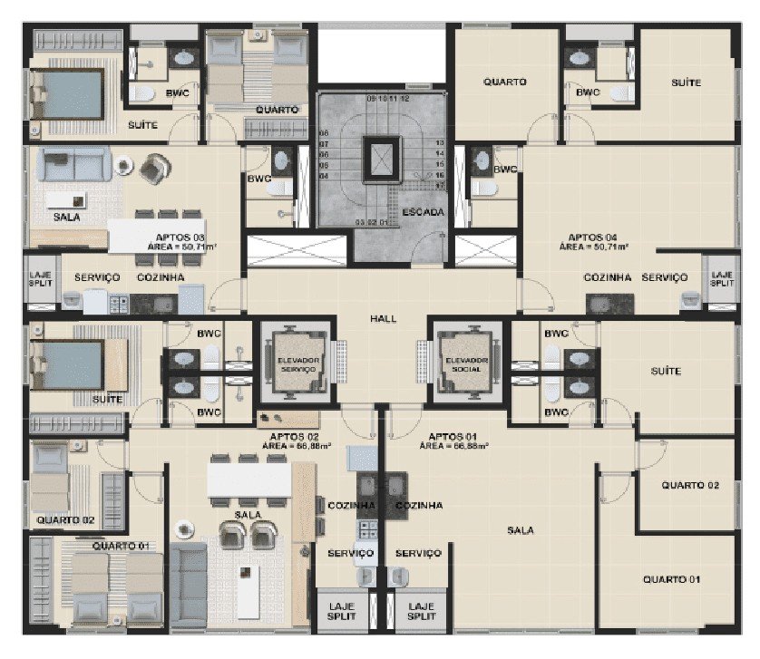 Área Total: 50,71 m² (R$ 10.195/m²)Área Privativa: 50,71 m²