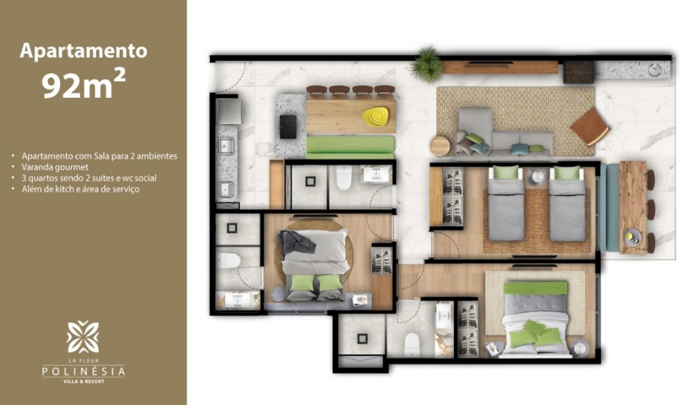 O La Fleur Polinésia é o melhor resort de Muro Alto, e você pode fazer parte dessa história. Um projeto exclusivo que integra uma vila gourmet, com serviços 24h, e área de lazer para seus hóspedes. Garanta uma unidade neste paraíso na melhor praia do Litoral Sul pernambucano.
