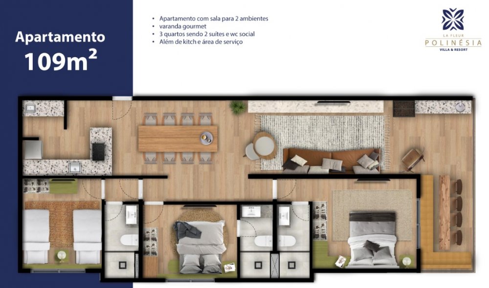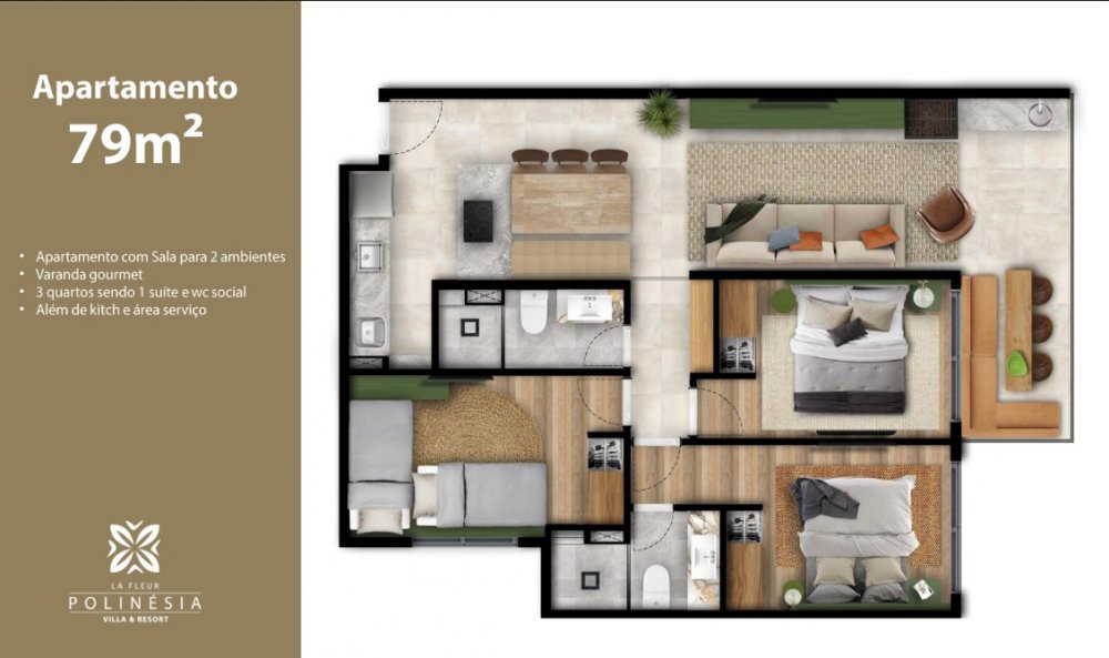 La Fleur Polinésia - 3 quartos - Muro Alto