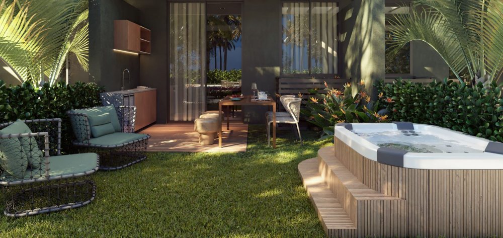 Com gestão de aluguel, o empreendimento conta com infraestrutura de resort e uma vila gourmet com acesso exclusivo a praia.