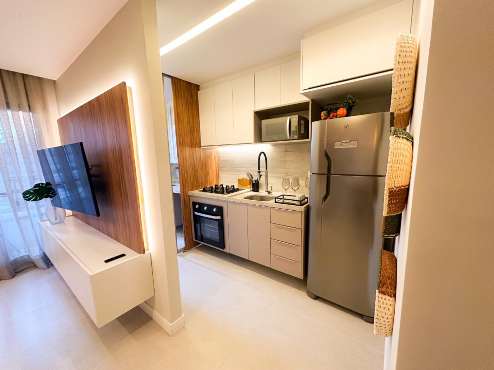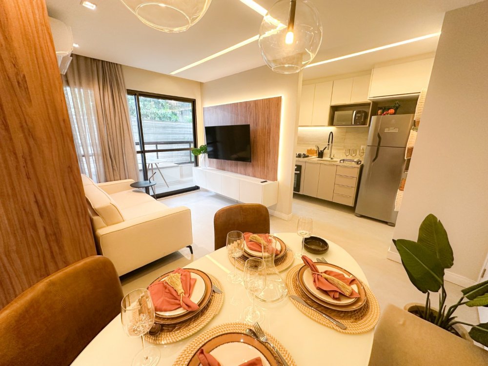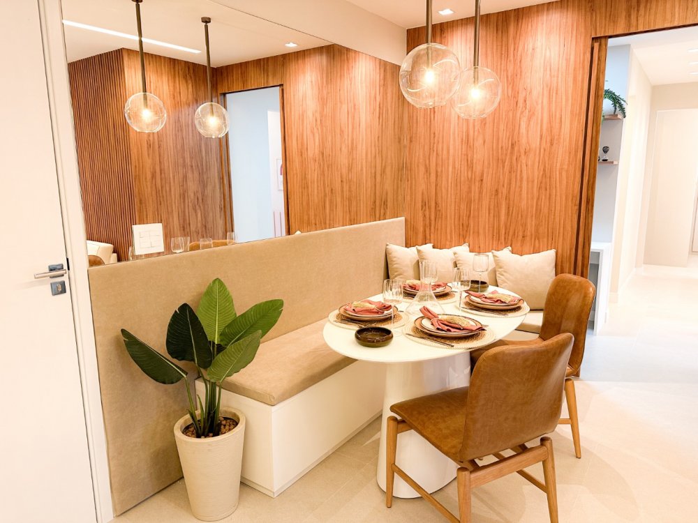 Compostos por varanda gourmet, sala para 2 ambientes, cozinha, área de serviço, WC social, espaço para split.