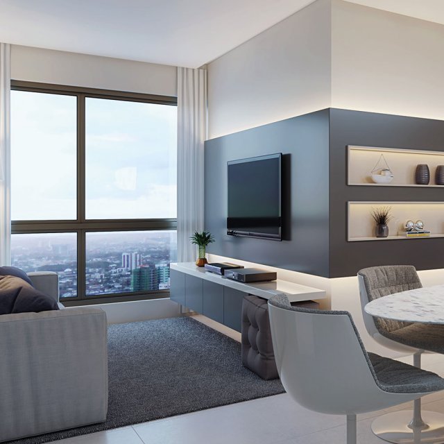 Compostos por sala para 2 ambientes, cozinha, área de serviço, WC social, espaço para split.