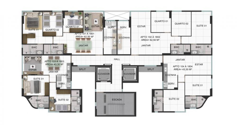 Área Total: 62,50 m² (R$ 9.920/m²)Área Privativa: 62,50 m²