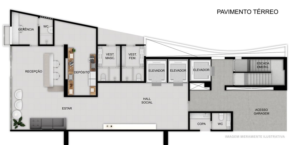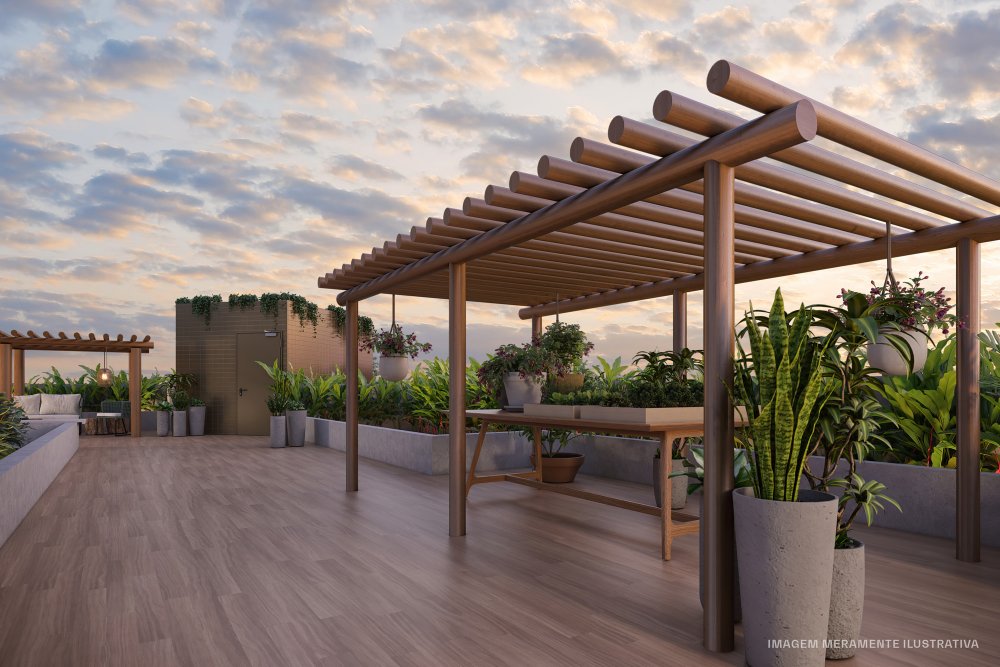 Apartamentos de 1 quarto, com plantas de 30,75 a 61,50m², Unidades compostas por sala, quarto com suíte, home office, cozinha, Área para instalação de equip. Ar Cond. Split, Sistema de Central para Aquecimento de Água.