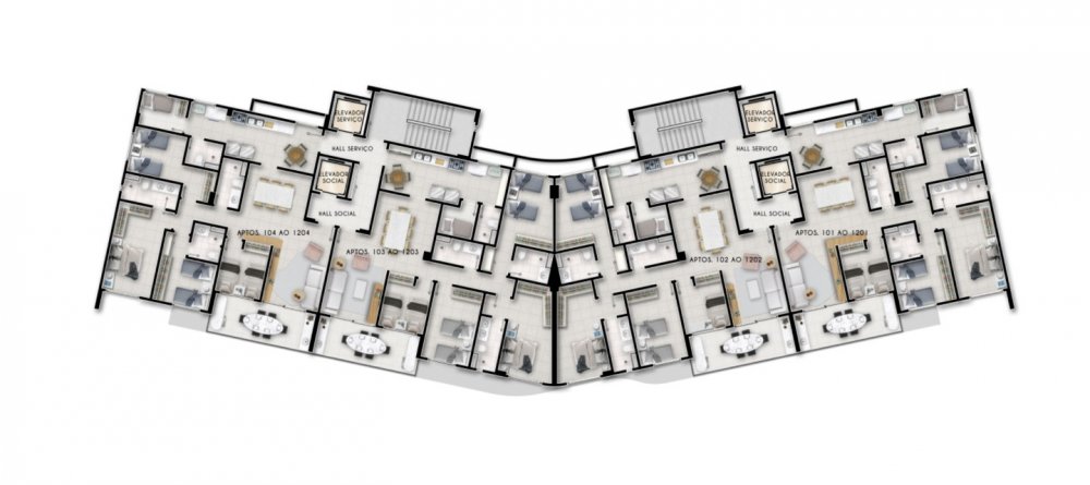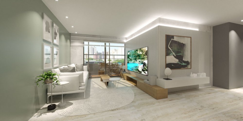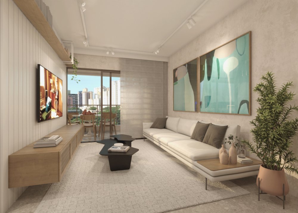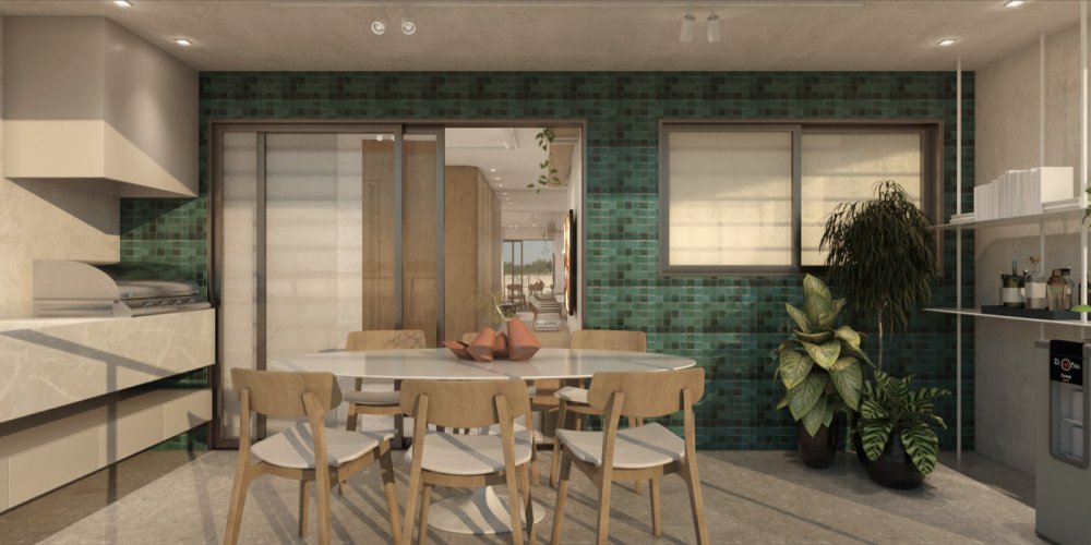 Compostos por varanda gourmet, sala para 2 ambientes, cozinha, área de serviço, WC social, espaço para split, dependência e WC de serviço.
